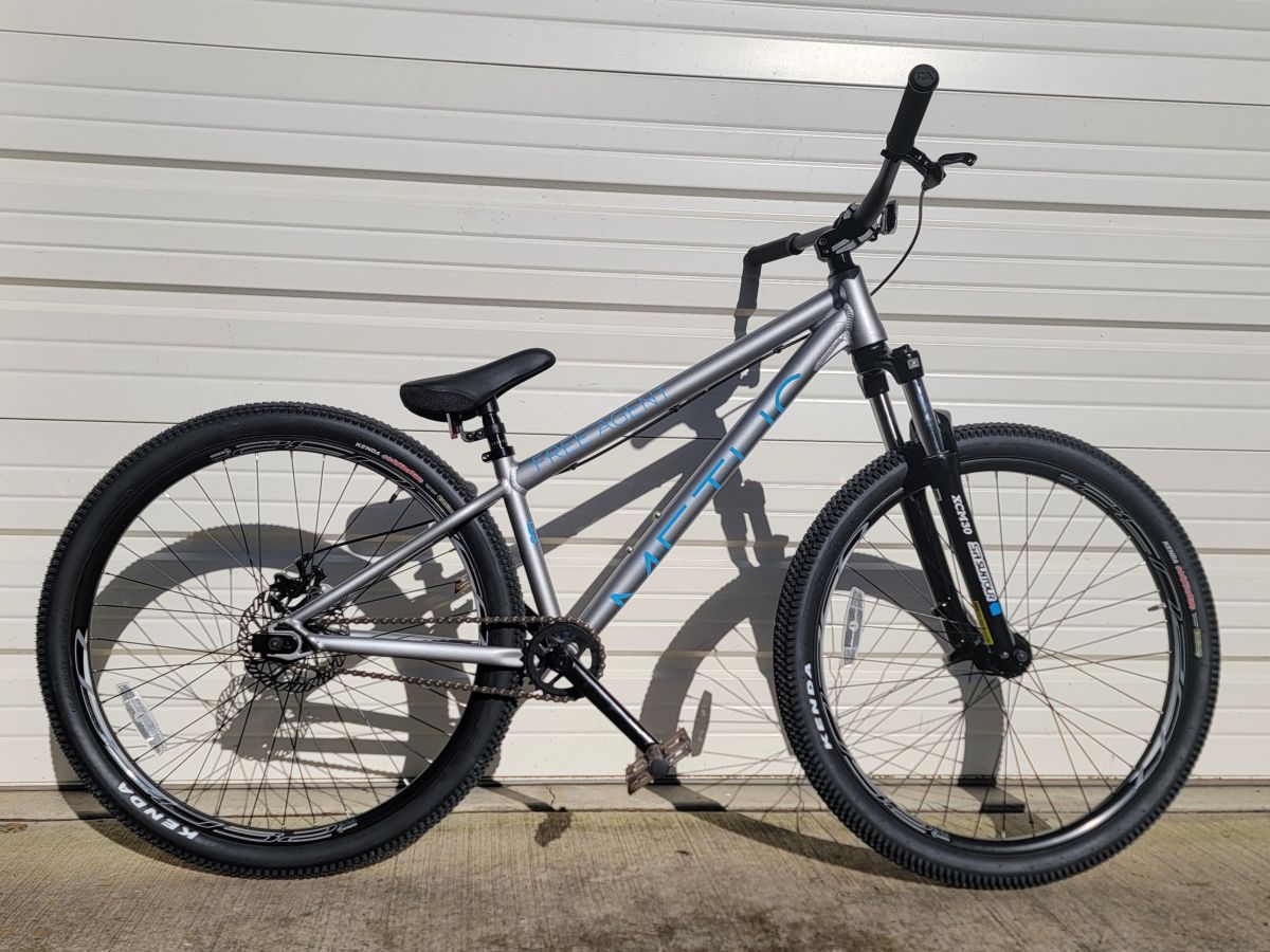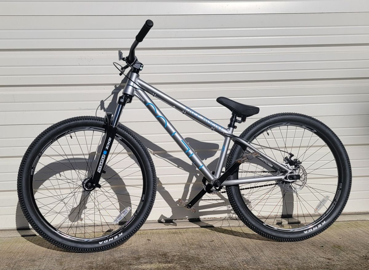 New big size BMX bike. 26″ wheels and disc brake! 100mm of travel on fork softens up the landings!
