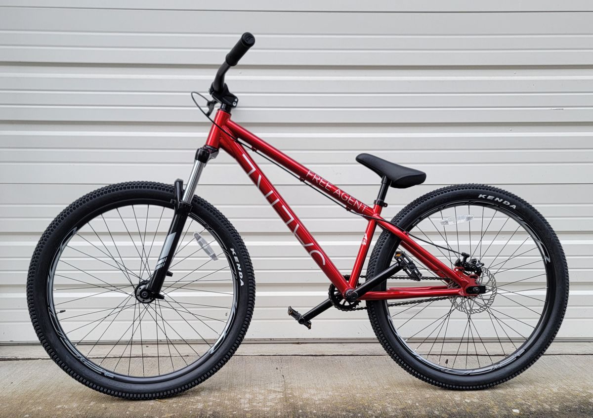 Free Agent’s Salire is a sweet BMX dirt jumper bike that features an Integrated headtube, a Mid cartridge bottom bracket, a 100mm travel fork, Bengal cable disc brakes and a VAXA 32 (8605) fork.